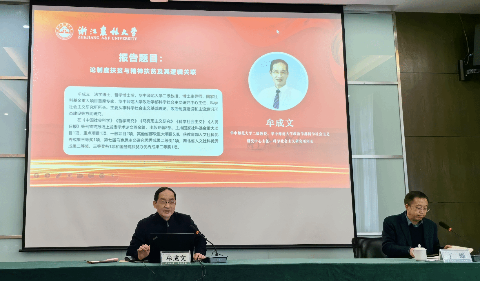 (邹欣羽报道)12月16日,由浙江农林大学主办的“回顾与展望:‘一带一路’减贫合作学术研讨会”在浙江省杭州市召开。华中师范大学政治学部科学社会主义研究中心主任、华中师范大学二级教授、华中师范大学政治与国际关系学院博士生导师牟成文出席并作题为《论制度扶贫与精神扶贫及其逻辑关联》的主旨报告。